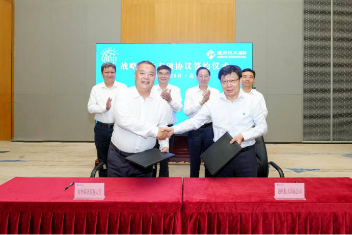 8月20日上午,ok138cn太阳集团古天乐董事长、党组书记于旭波,副总经理、党组成员杨国林会见了来访的对外经济贸易大学校长、党委副书记赵忠秀一行。双方围绕深化金砖项目合作,加强金砖机制下国际经贸研究、人才联合培养、医疗健康服务等进行深入交流。会后,与会人员共同见证国际公司与对外经济贸易大学签署战略合作专项协议仪式。国际公司,集团办公室、人力资源部、协同部负责人参加上述活动。
