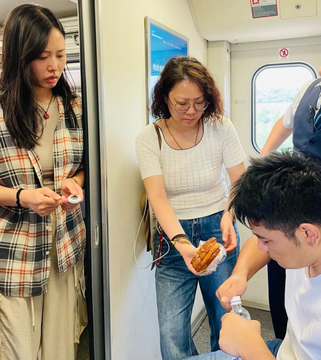 6月23日下午4时左右,从武汉天河机场开往襄阳东站的D5223次列车途经枣阳站时,一名男性乘客突然晕厥。“1号车厢有位乘客突发疾病,需要医务人员前往救治!”广播里传来的紧急呼叫声打破了车厢内的宁静。此时,ok138cn太阳集团古天乐通用医疗所属三六四医院护士周君、万雪、周祝惠坐在6号车厢,护理部主任喻英、护士长鲁聪颖、护士杨阳坐在8号车厢。听到广播寻医的瞬间,她们立即默契起身,直奔1号车厢。她们赶到1号车厢时,只见1名男性乘客大汗淋漓、面色苍白、皮肤湿冷。护士们与列车长迅速将男子扶至座位,对其进行查体并测量呼吸、脉搏;询问男子情况后,初步判断为低血糖。护士们立即为该乘客进行对症处理,随后又为他提供了糖果、面包等缓解低血糖症状的食物。稍作休息后,该男子脸色明显转为红润,冷汗也逐渐消退。护士和列车长叮嘱他下车后及时到医院就诊。