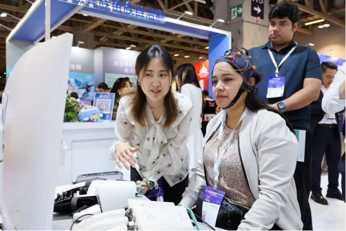 人工智能多模态脑机接口系统成为展示的一大亮点。此次展示的脑机接口设备,融合了先进的核心脑机接口技术,能通过高精度脑电解码算法实时解析患者运动意念,实现跨任务脑机交互范式,为运动神经功能障碍患者提供了全新的诊疗方案,适用于脑卒中、脑创伤等患者的主动康复。